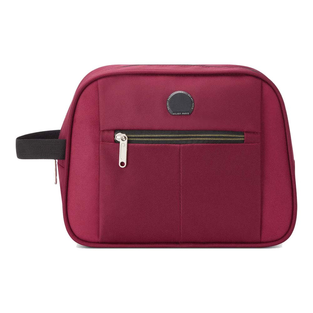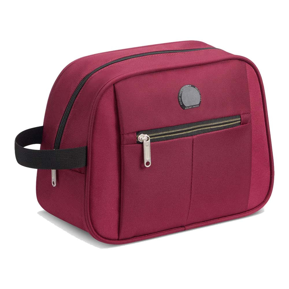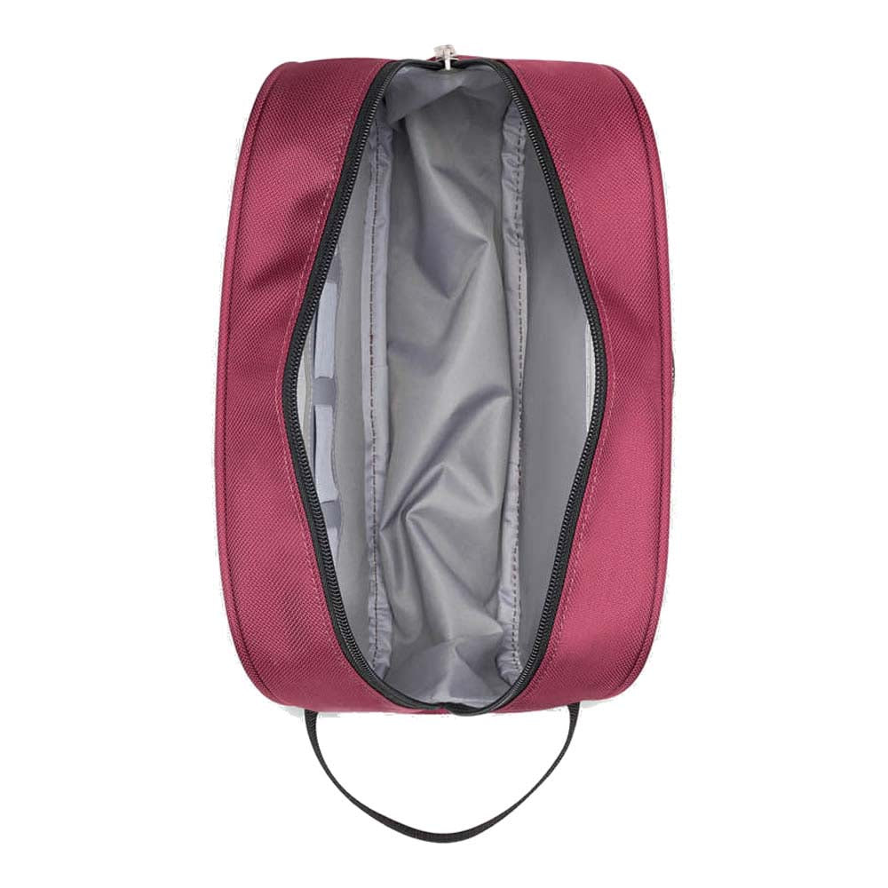 Práctico y ligero neceser de poliéster. Cuenta con un asa, un interior ergonómico y un bolsillo exterior. Cierre de cremallera. Decorado con el logotipo de la marca.