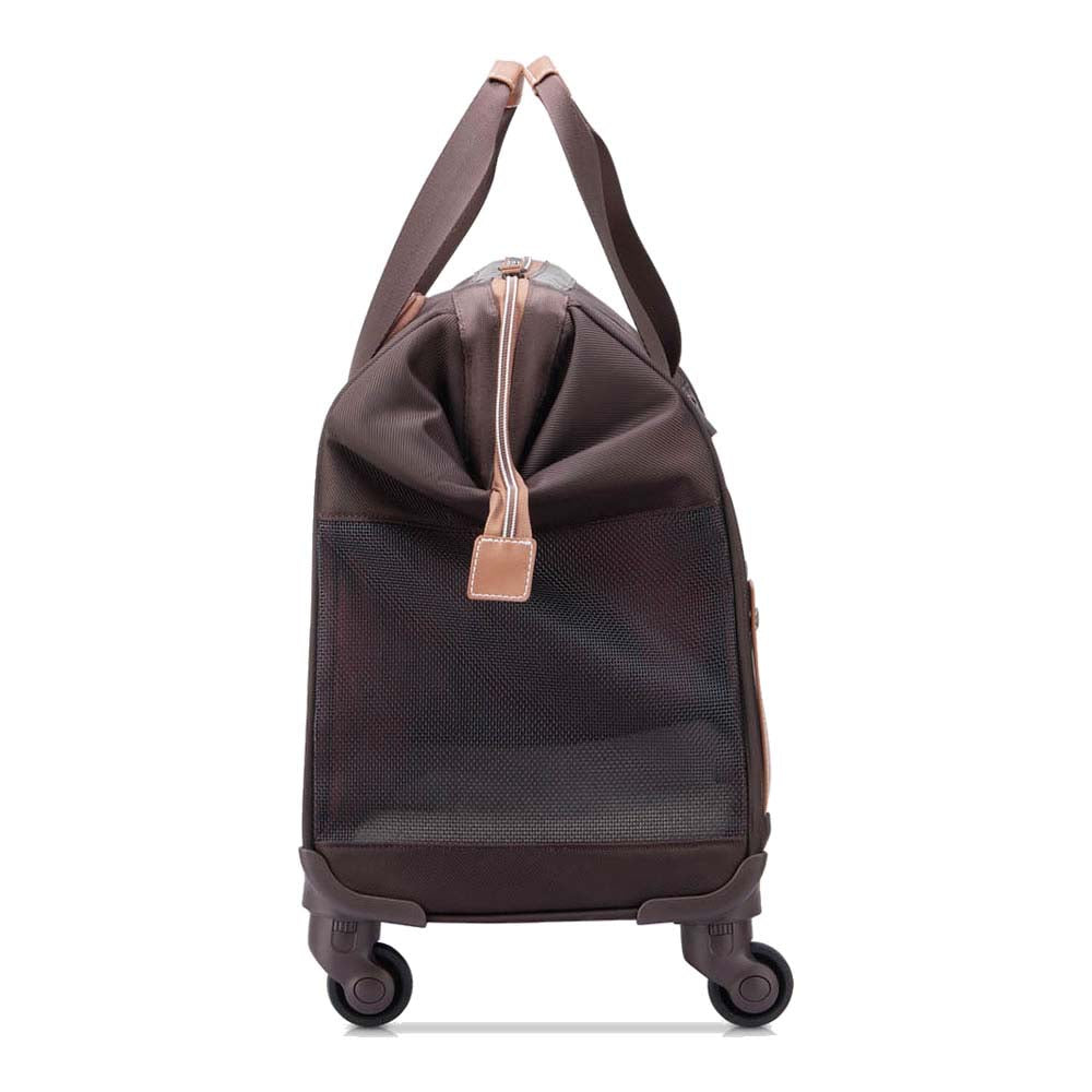 partir de 11 botellas de plástico totalmente recicladas, su tratamiento con tecnologia antimicrobiana SILVADUR le permite prevenir el crecimiento de bacterias. SILVADUR es una marca comercial de Internacional Flavors y Frangance, Inc y sus afiliados","image":"https://drive.google.com/file/d/1xIve5KZtGo5DhIJg6BtbfyQqitoefJ-H/view?usp=drive_link"},{"title":"UNA BOLSA COMODA PARA ANIMALES","content":"Este bolso tiene una gran apertura y paredes de malla para que tu fiel compañero pueda descubrir el mundo contigo. El cojín es extraíble y lavable para un confort óptimo. Mantén la calma incluso en el coche y fija tu transportín para mascotas gracias a las presillas del cinturón de seguridad.""image":"https://drive.google.com/file/d/1atz8kIObj_QRR3Mt_DuIvVejNRUNkehc/view?usp=drive_link"},{"title":"COMPATIBLE CON SU SISTEMA DE CARRO DE EQUIPAJE","content":"Para tus viajes más largos, coloca tu transportín para mascotas en el carrito de tu maleta mediante un lazo situado en la parte trasera del producto. Agrupa y enrolla tu equipaje en un solo movimiento. ¡Tu bolso también tiene 4 ruedas extraíbles para moverlo por estaciones de tren o aeropuertos con facilidad!","image":"https://drive.google.com/file/d/1SRBu-KUgnHfGHRk4Eyq1T2Ayuno4hJw6/view?usp=drive_link"}]