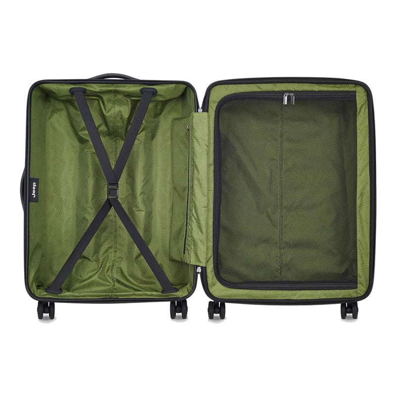 Embárcate en tu próxima aventura con el resistente equipaje rígido expandible Jeep 4C, que cuenta con un logotipo en relieve y ruedas dobles duraderas diseñadas para conquistar cualquier terreno. Con dos asas de transporte y cremalleras entrelazadas para una fácil portabilidad y mayor seguridad, este equipaje garantiza que tus pertenencias se mantengan seguras mientras viajas. En el interior, encontrarás un interior bien organizado con correas de amarre, un bolsillo plano para artículos esenciales de viaje y un divisor de malla con cremallera para mantener tu equipo en su lugar. Desde viajes épicos por carretera hasta expediciones remotas, este versátil equipaje es tu compañero de confianza para cada viaje. Bóveda de equipo expandible de grado aventura diseñada a partir de una robusta carcasa de mezcla de ABS y policarbonato, que refleja la dureza de la destreza todoterreno de Jeep. Logotipo en relieve inspirado en Jeep que rinde homenaje al legendario automóvil Jeep y garantiza que su equipaje sea tan icónico como sus aventuras al aire libre. Ruedas de tracción doble probadas en senderos y diseñadas para una movilidad perfecta en paisajes difíciles, lo que le permite conquistar cualquier terreno. Manijas de expedición gemelas para un agarre rápido y seguro, facilitando el transporte mientras se aventura a su próximo destino salvaje. Cremalleras entrelazadas de precisión listas para su candado de combinación, asegurando su equipo contra los elementos (candado no incluido). Centro de expedición interior con correas de amarre, un bolsillo utilitario y un divisor de malla táctico con cierre, lo que permite una organización estratégica para su viaje a la naturaleza. Garantía limitada mundial de 2 años