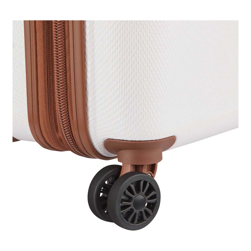 Movilidad suave: Ruedas de doble densidad que brindan una movilidad superior y un desplazamiento silencioso, asegurando una navegación fácil por aeropuertos y calles de la ciudad.
